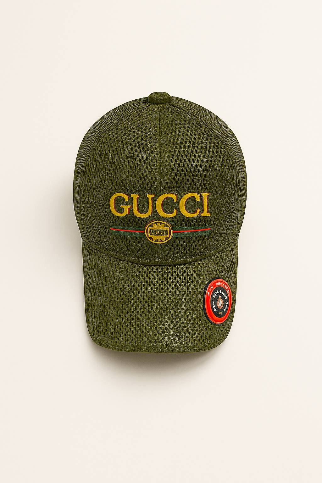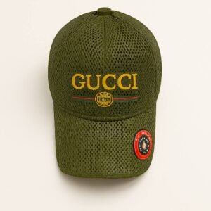 - 💚 অলিভ সবুজ GUCCI ক্যাপটি হলুদ এমব্রয়ডারি, লাল-সবুজ স্ট্রাইপ এবং একটি আইকনিক এমব্লেমের মাধ্যমে বিলাসবহুল ব্র্যান্ডিং প্রকাশ করে।